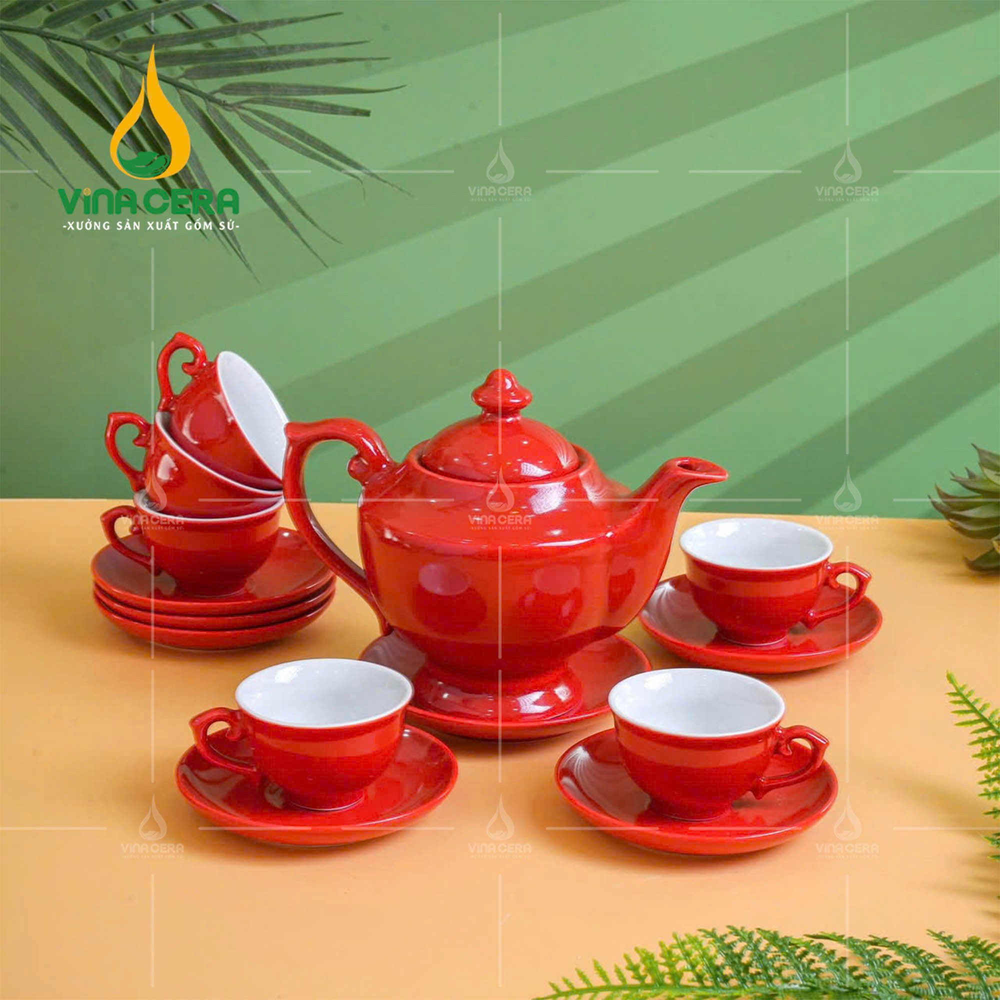 Bộ Ấm Chén Mẫu Đơn Sứ Bát Tràng Men Đỏ AC02112324