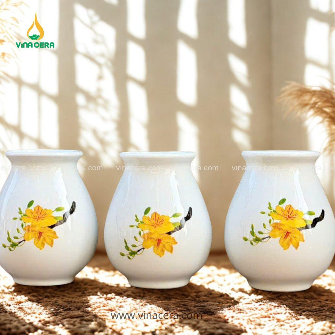 Bình Hoa Sứ Trắng Dáng Bầu Vẽ Hoa Mai Vàng Bát Tràng