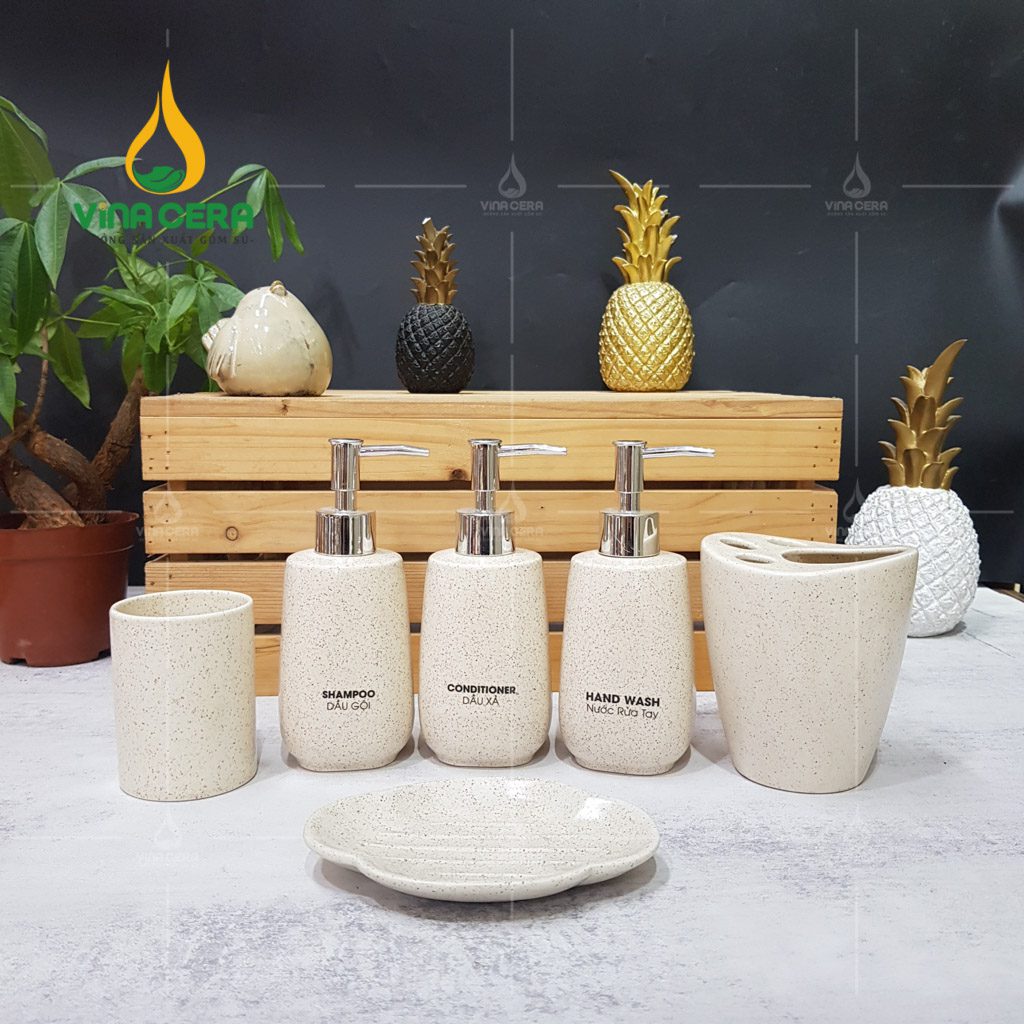Kết hợp hài hòa giữ vẻ đẹp truyền thống và hiện đại, Bộ đựng dầu gội, sữa tắm bằng sứ là điểm nhấn hoàn hảo cho không gian phòng tắm.