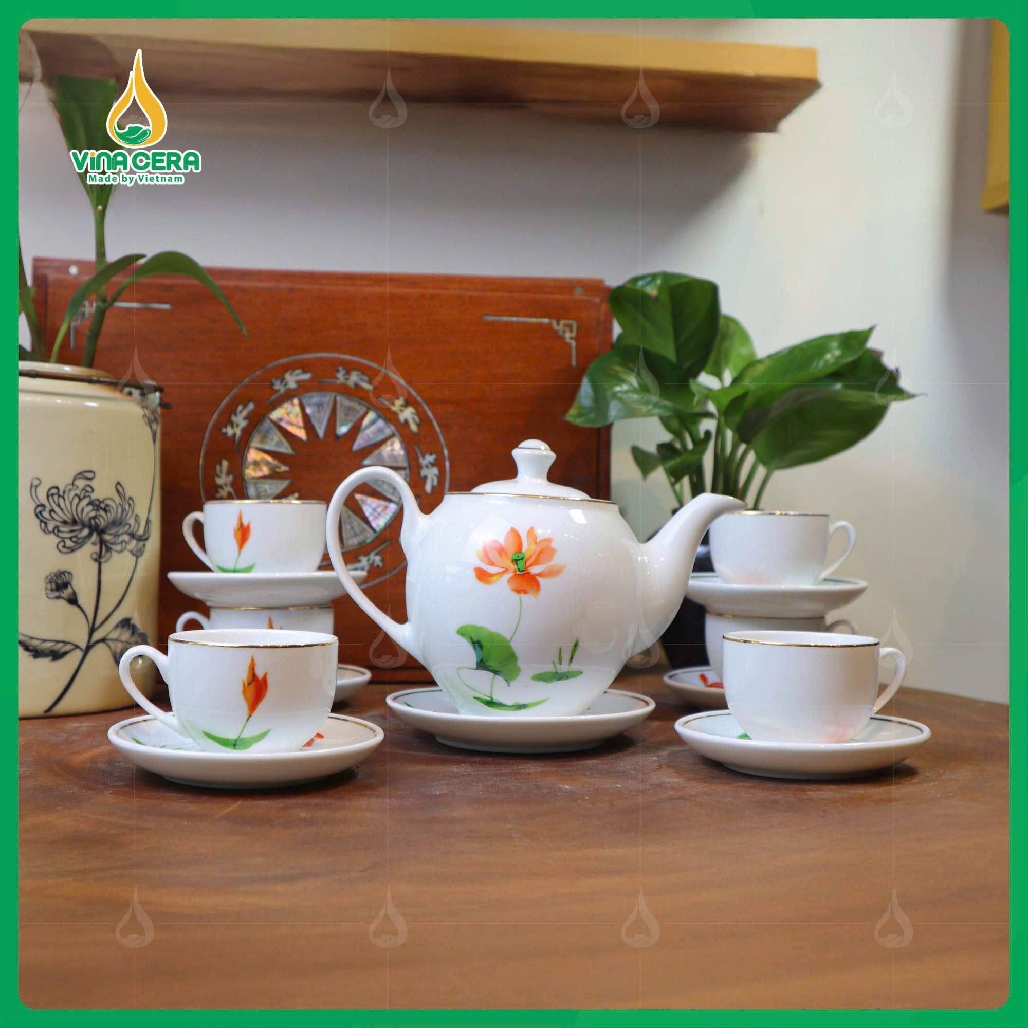 Số lượng: 1 ấm, 6 chén, 7 dĩa