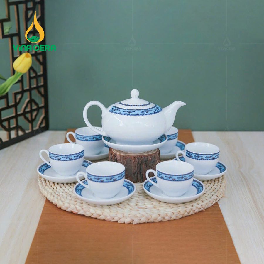 Bộ Ấm Trà Sứ Trắng Viền Chim Hạc – VN AC 52